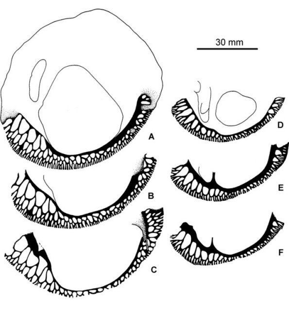 Canals along the ventral shell wall of left valve of Mitrocaprina boeotica (Munier-Chalmas, 1867); from Steuber 1999